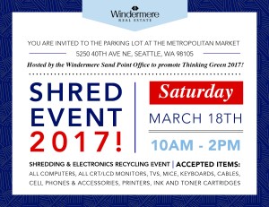 Our Sand Point office is thinking + acting green this weekend! If this is convenient for any of your sphere in the NE Seattle hood, a special fyi! Hosted at The Metropolitan Market.