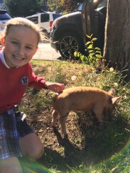 …and oh, this is what happens when mom goes out of town on a business trip (aka, me) and comes home to find out we are babysitting a pig this weekend! What?!? Good luck, to me.